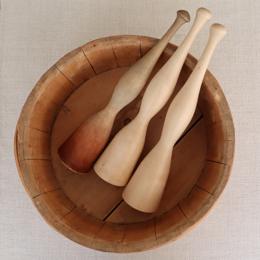 Tämän puisen survimen muoto pohjautuu Suomesta kirpputorilta löydettyyn antiikkiseen survimeen. Ekovekotin Oy on ottanut mallin kauniin muodon oman pienen survimensa lähtökohdaksi. Viimeisessä kuvassa näkyvät antiikkinen esikuva ja kaksi uutta survinta.