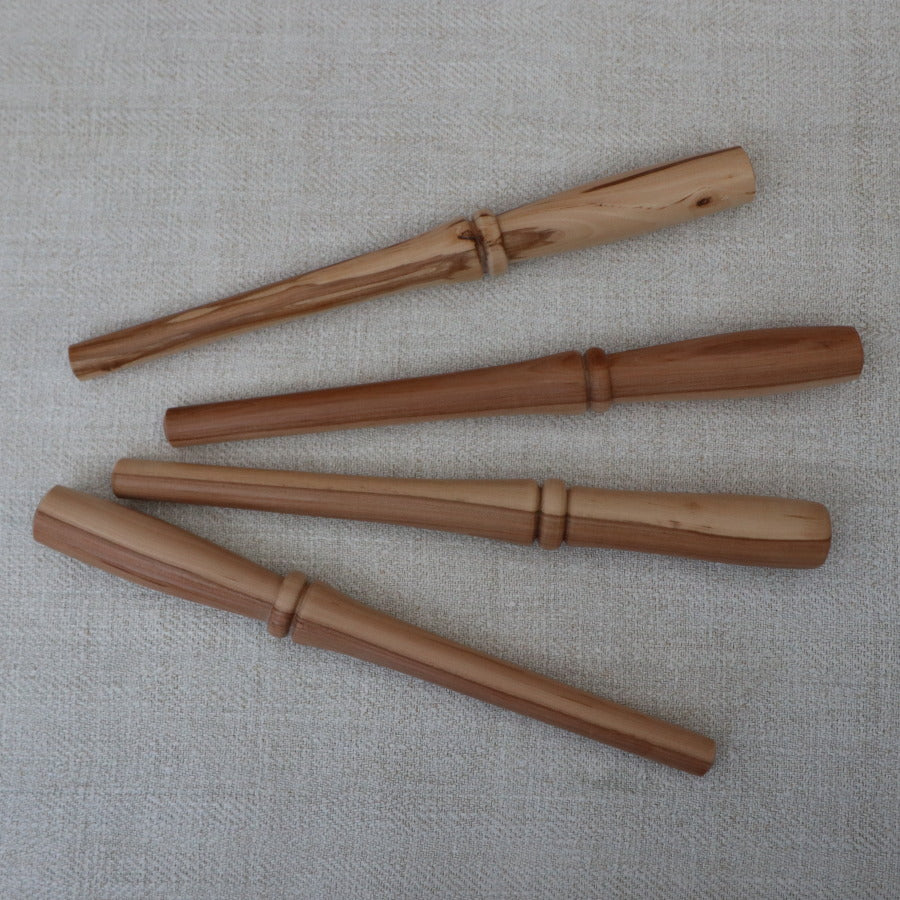 Tämä kerintäpuikko on tehty Suomessa Kesämäen Puru ja Lastu -nimisessä puuverstaassa paikallisesta omenapuusta. Omenapuusta saa kauniin näköisiä esineitä, koska samasta puusta löytyy sekä vaaleampaa että tummempaa puuta. Kerintäpuikon pinta on hiottu sileäksi. Muuta pintakäsittelyä siinä ei ole.